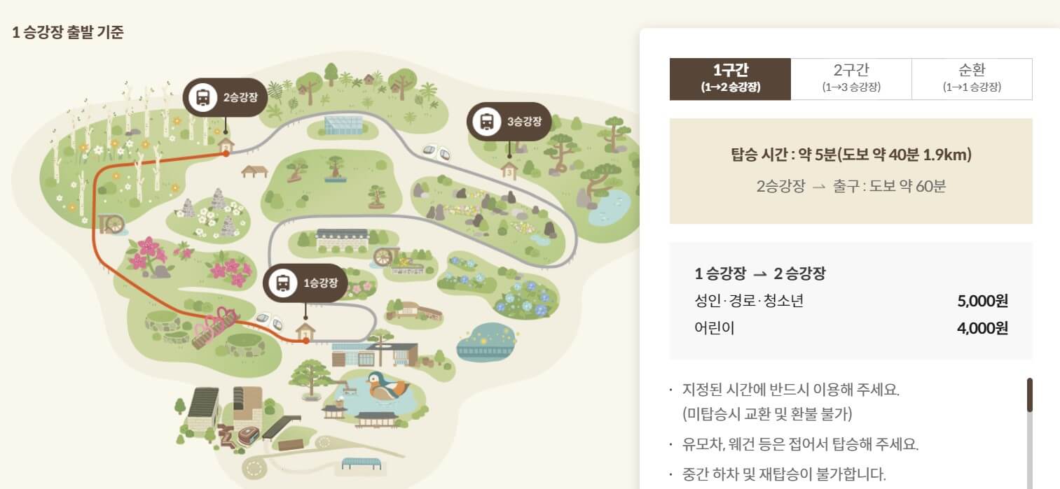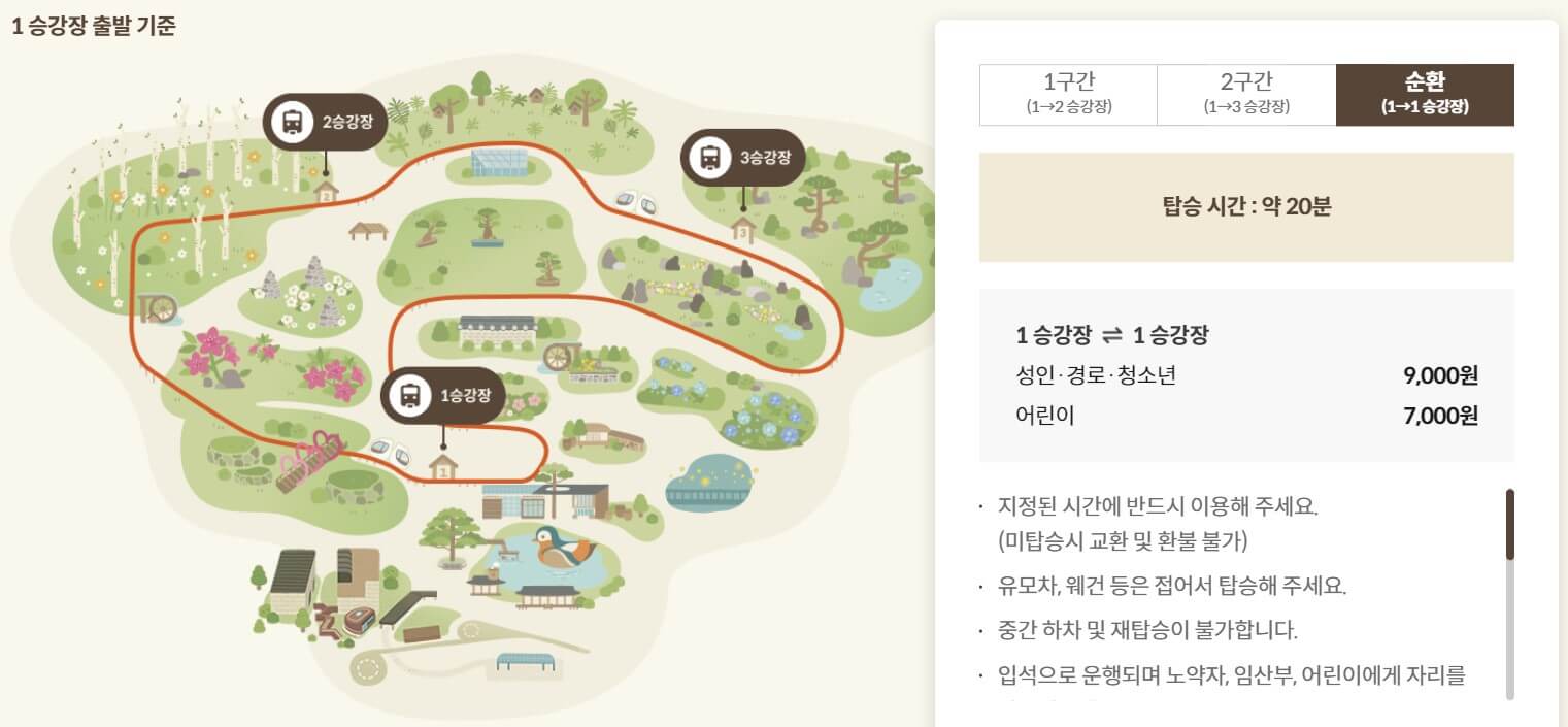 - 순환권이 편리: 여러 구간을 나누어 티켓을 구매하는 것보다 순환권을 구매하는 것이 효율적입니다. 순환권은 1구간부터 3구간까지 모두 감상할 수 있으며, 도중에 내리지 않고 한 번에 숲을 돌아볼 수 있습니다.